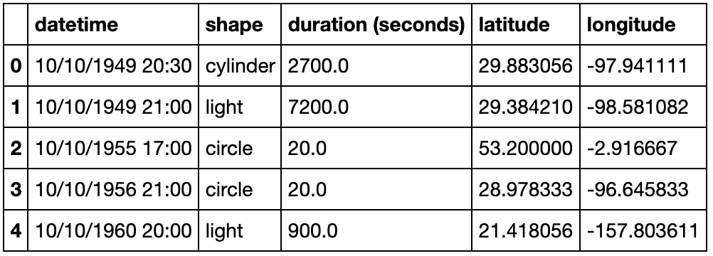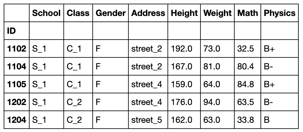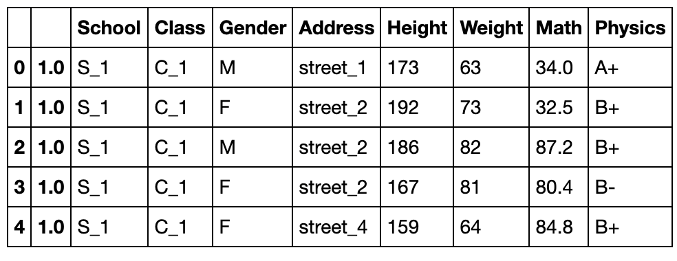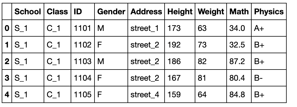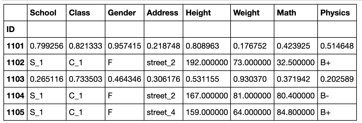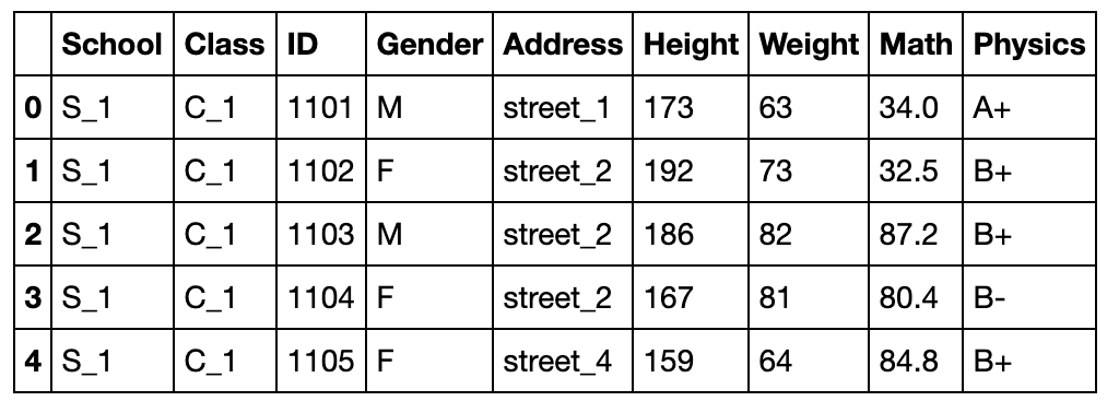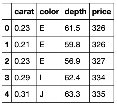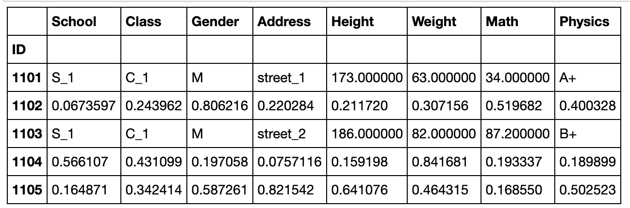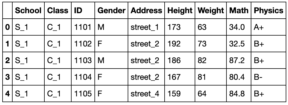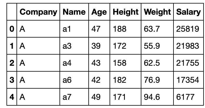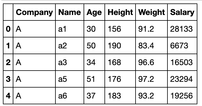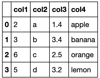 df = pd.DataFrame({'col1':list('abcde'),'col2':range(5,10),'col3':[1.3,2.5,3.6,4.6,5.8]},