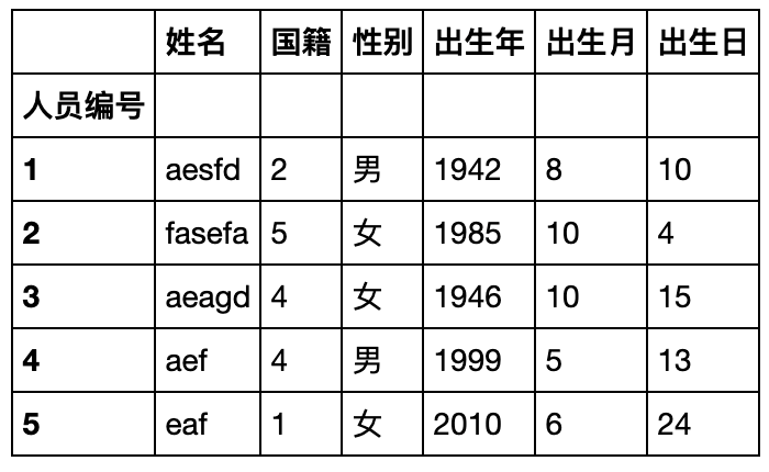 Index(['一', '二', '三', '四', '五'], dtype='object')