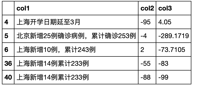 df.drop(index='五',columns='col1') #设置inplace=True后会直接在原DataFrame中改动