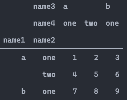 #多重索引下,如果行索引有名字,那么变为列之后在列索引的外层索引名作为列名。