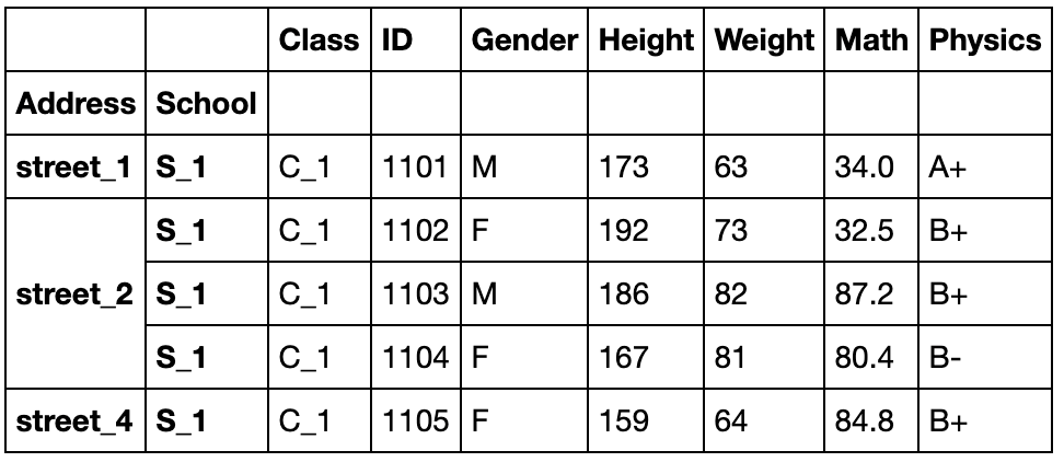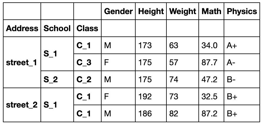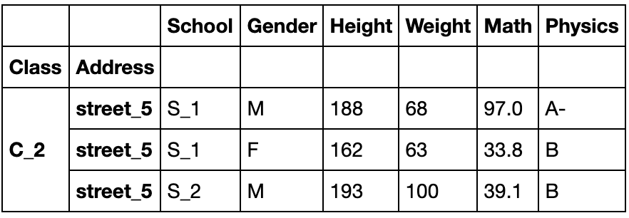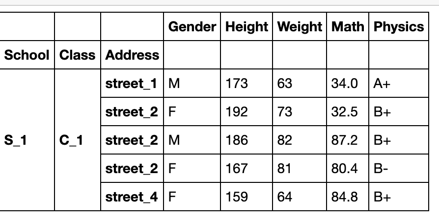 df1.reset_index(level = [1,2], drop = True) # drop = True, 直接丢掉选中的行索引,不插入